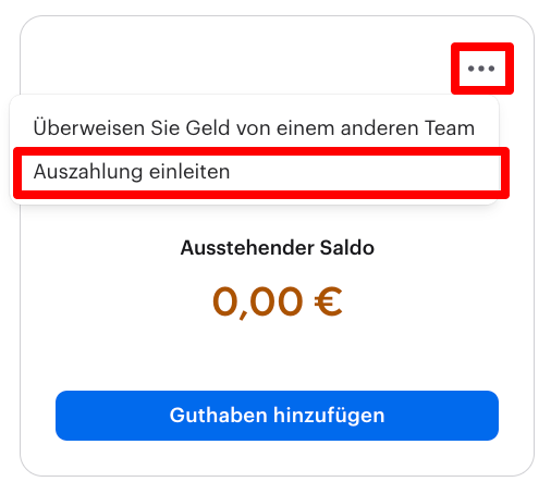 - Klicken Sie auf die drei Punkte in der oberen rechten Ecke und wählen Sie Auszahlung einleiten.