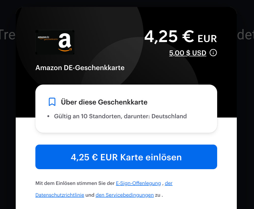 Sobald Sie Ihre Belohnung eingelöst haben, erhalten Sie Einlöseanweisungen sowie Informationen zu den Bedingungen und Konditionen Ihrer Auszahlung.