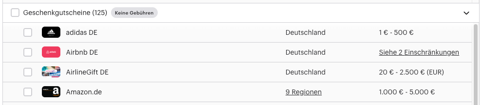 Bestimmte Geschenkkarten können nur in festgelegten, vordefinierten Beträgen ausgegeben werden – sogenannte diskrete Nennwerte.