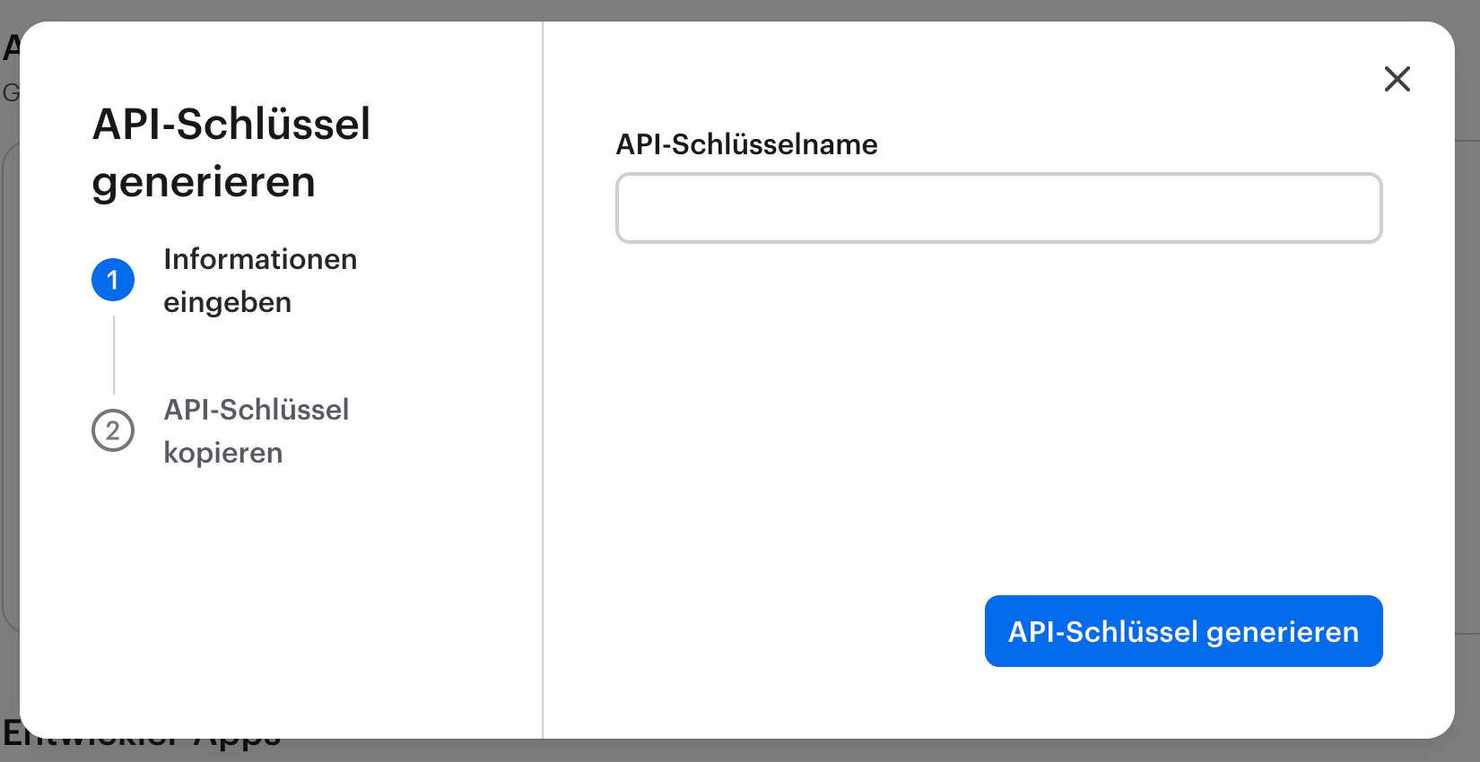 Geben Sie den Namen Ihres API-Schlüssels ein und bestätigen Sie ihn. Dies generiert ein einmalig sichtbares Token, das Sie kopieren und in Ihre Anwendung einfügen, um anschließend API-Anfragen zu stellen.