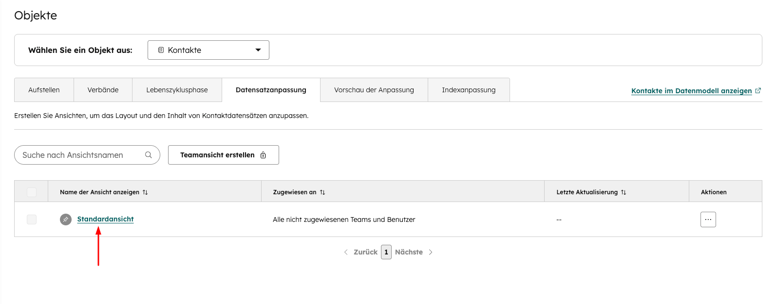 Klicken Sie auf Datensatzanpassung und wählen Sie die Ansicht aus, die Sie bearbeiten möchten.