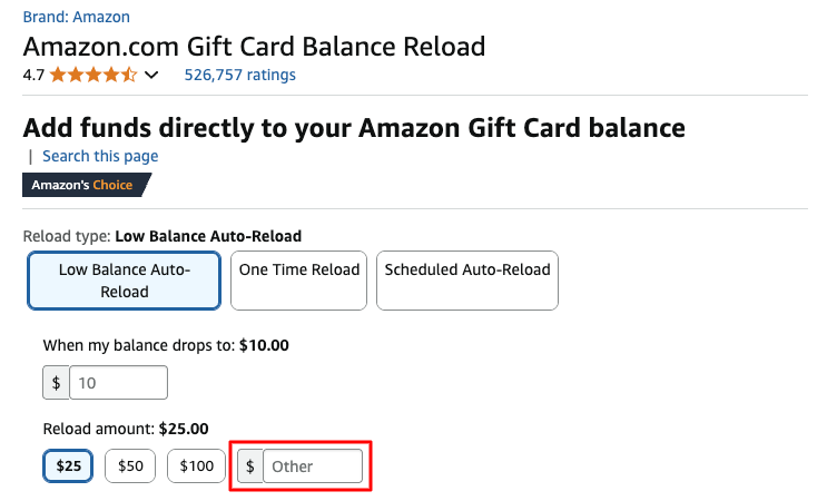 In the field labelled Other, enter the current balance of your prepaid card. If you’re not sure what your current balance is, see: How do I check my card balance?