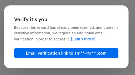 After redeeming a link reward, the recipient will need to confirm their email to access it again. The prompt will look like this: