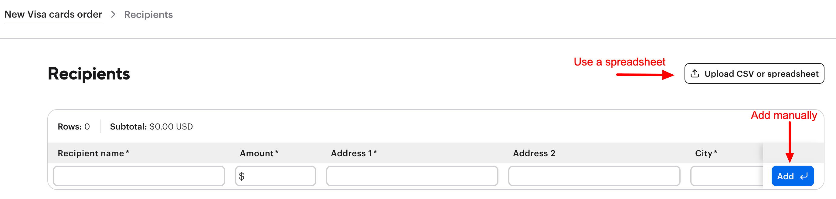 - Manually enter each recipient's information