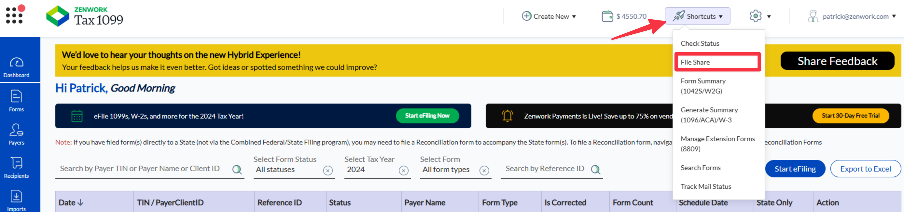 - Share the reference number with your Tax1099 Account Manager to being processing your file