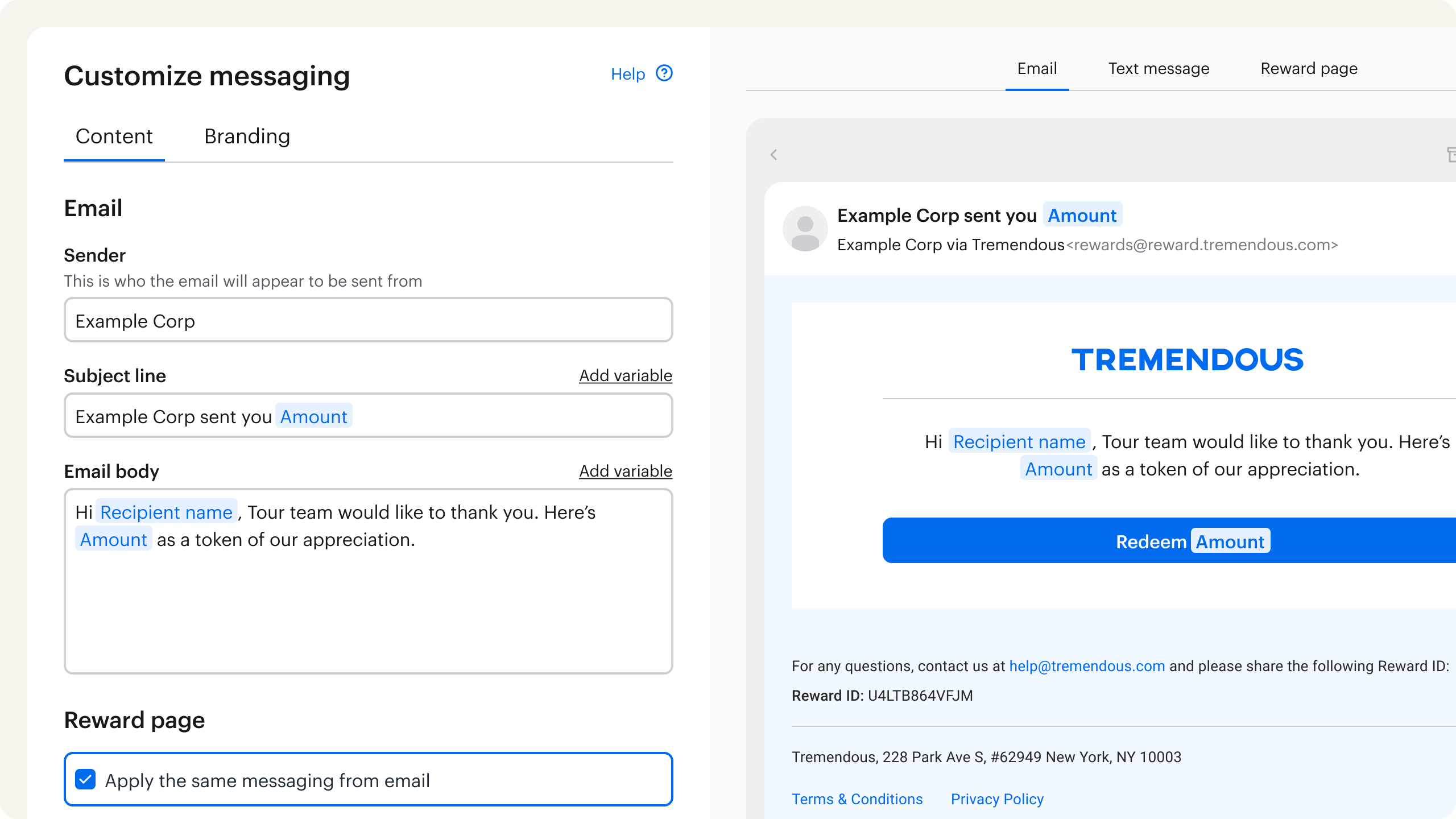 - Email and reward page (formerly webpage) messaging are now connected for faster edits while still allowing customization