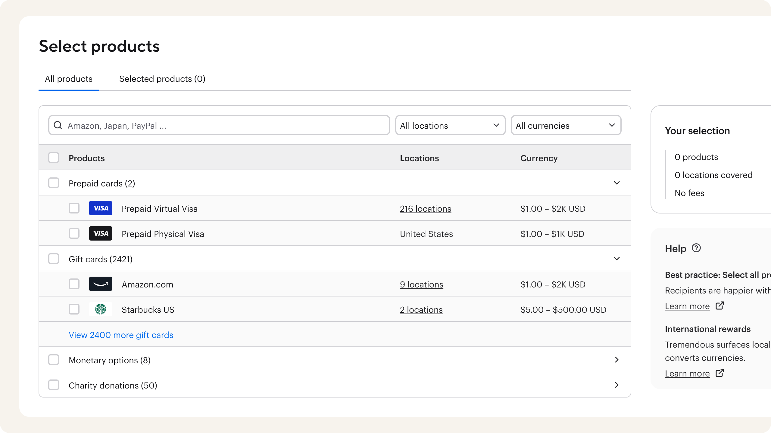 - Previews are available on the Review page, along with a summary of selected products and messaging