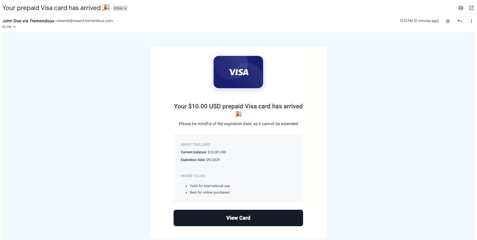 Your card page is accessible via the email you received. If you can't find your reward email, please email help@tremendous.com.