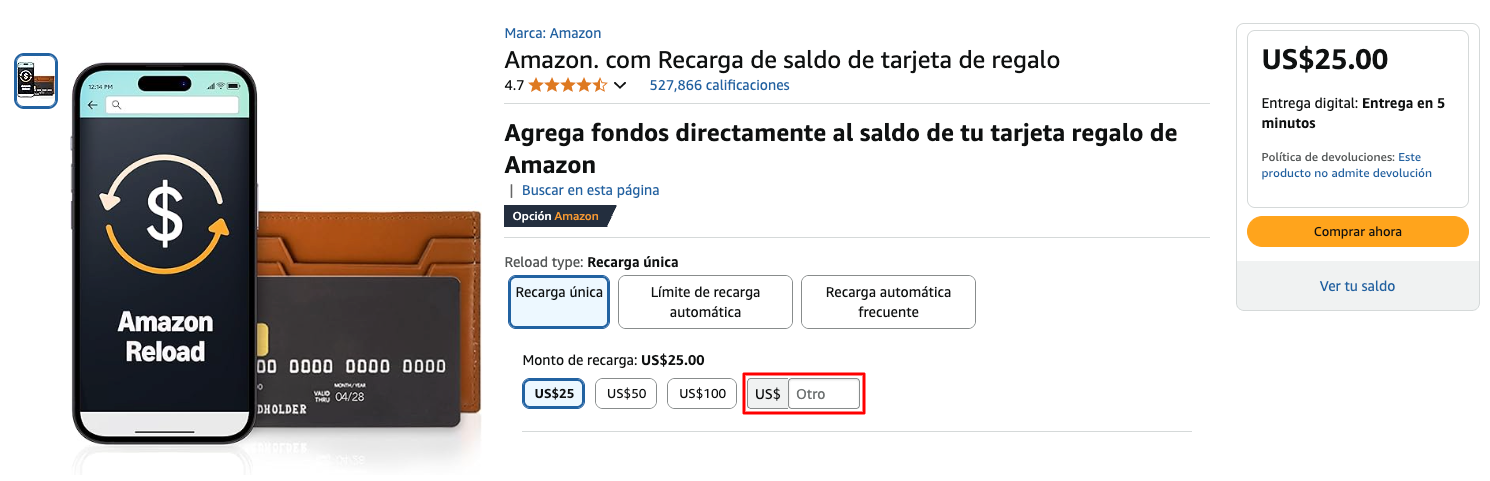 Para recargar el saldo de tu cuenta de Amazon con una tarjeta prepaga: