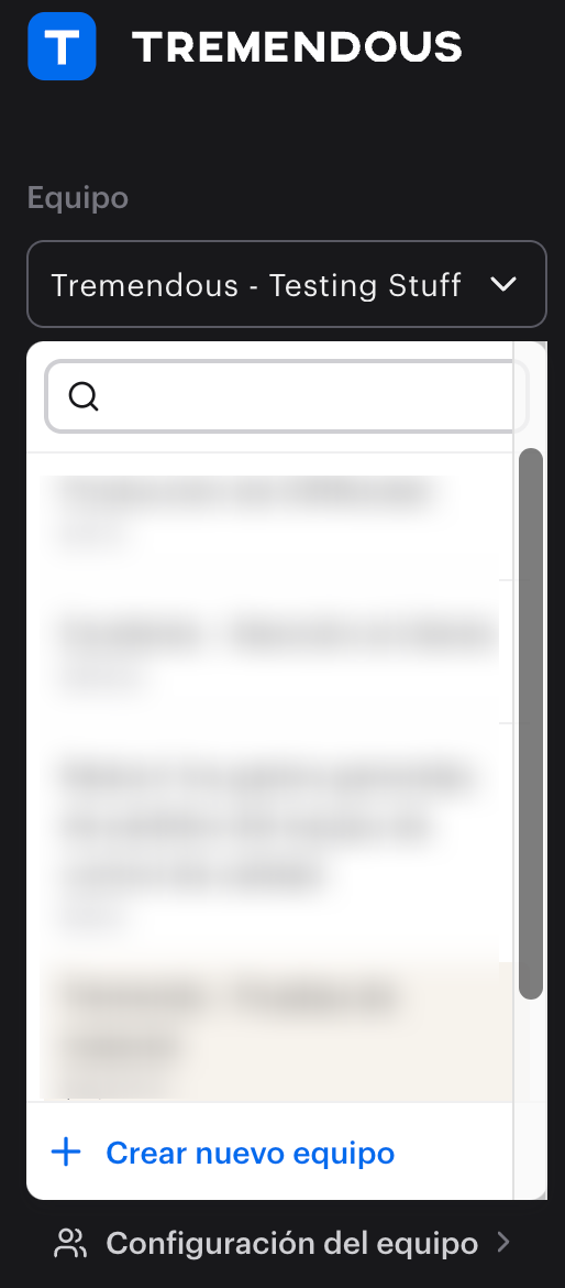 - Haga clic en la flecha desplegable en el selector de equipos en el menú de la izquierda y seleccione Crear nuevo equipo.