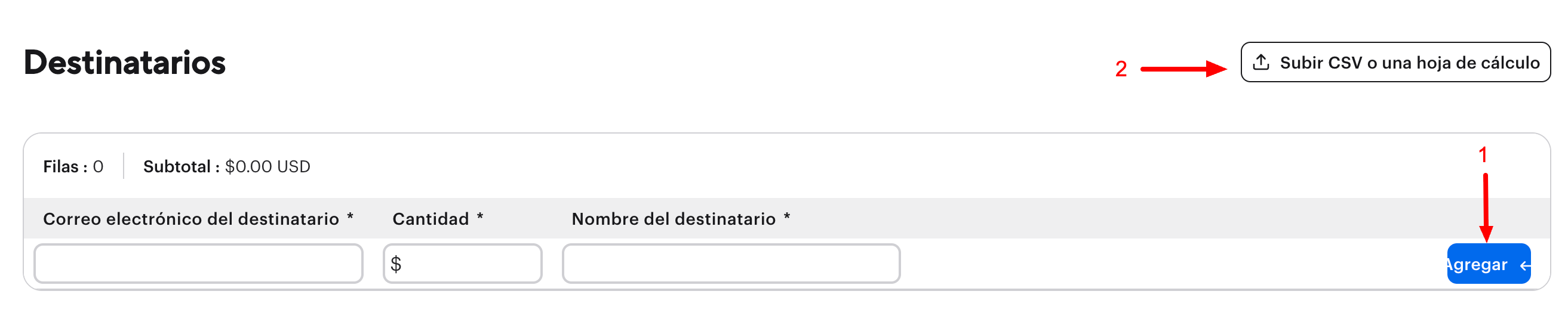 Agregar destinatarios