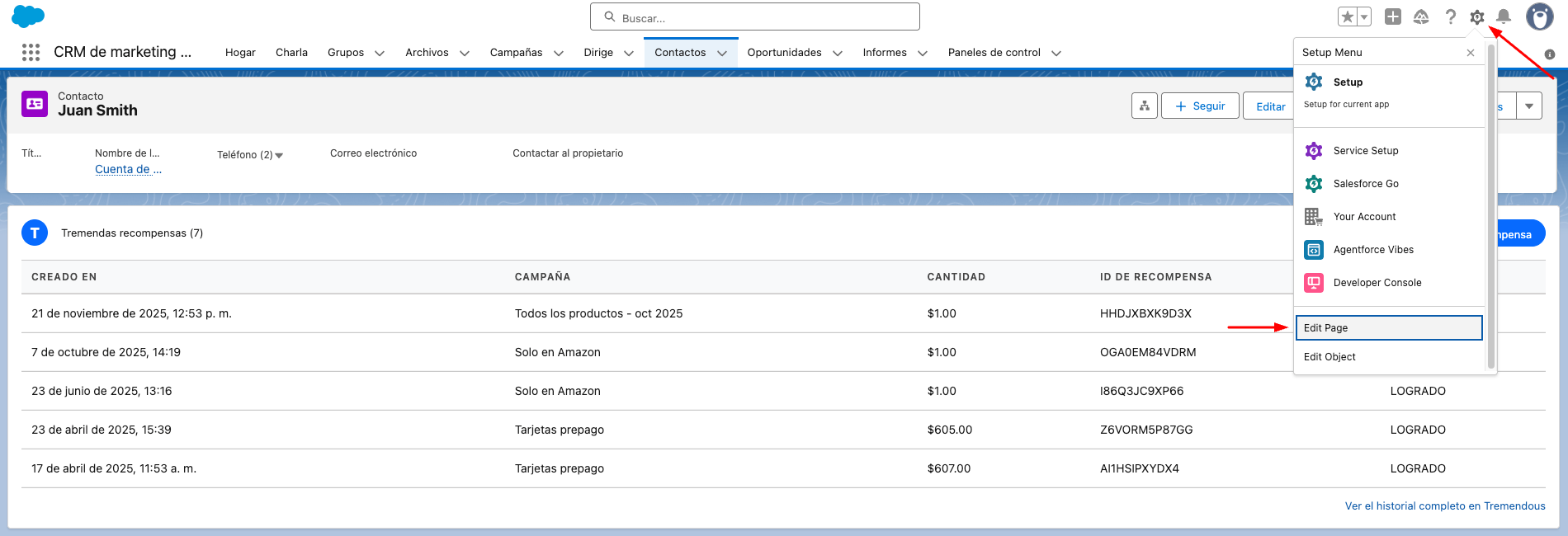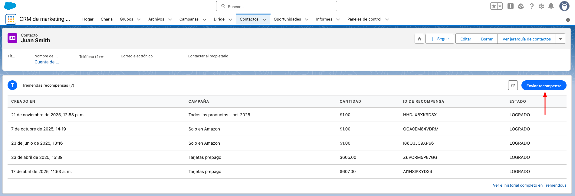 Enviando una recompensa a través de la aplicación Tremendous para Salesforce