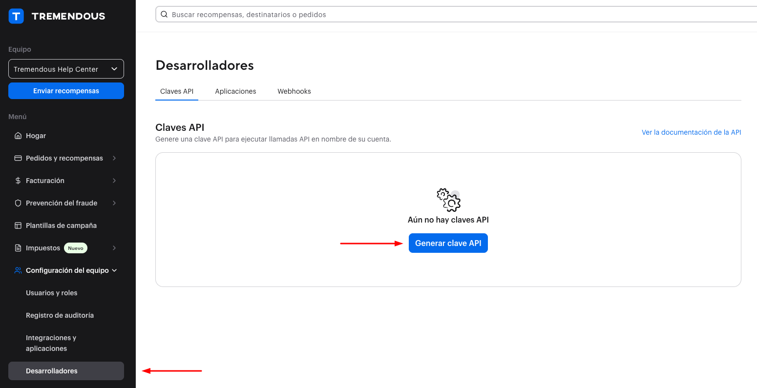 1. Ve a tu panel de Tremendous (https://app.tremendous.com)