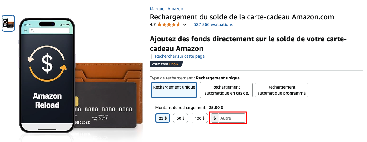 Pour recharger le solde de votre compte Amazon avec une carte prépayée :