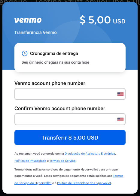 Os pagamentos do Venmo estão disponíveis apenas nos Estados Unidos. Se você não estiver nos Estados Unidos, escolha uma opção de pagamento diferente.