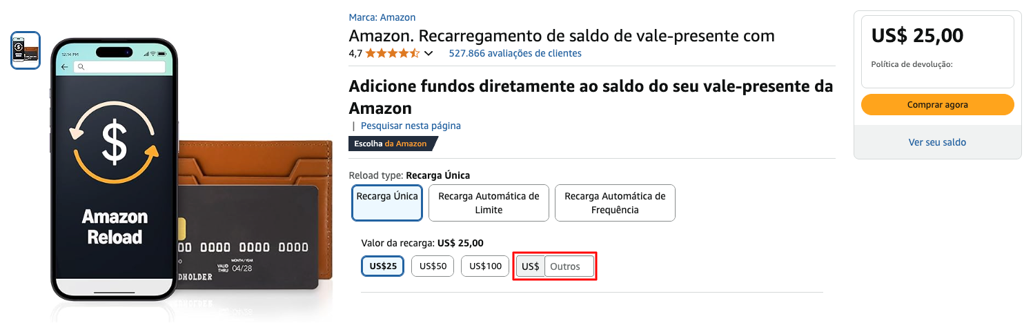 Para recarregar o saldo da sua conta Amazon com um cartão pré-pago: